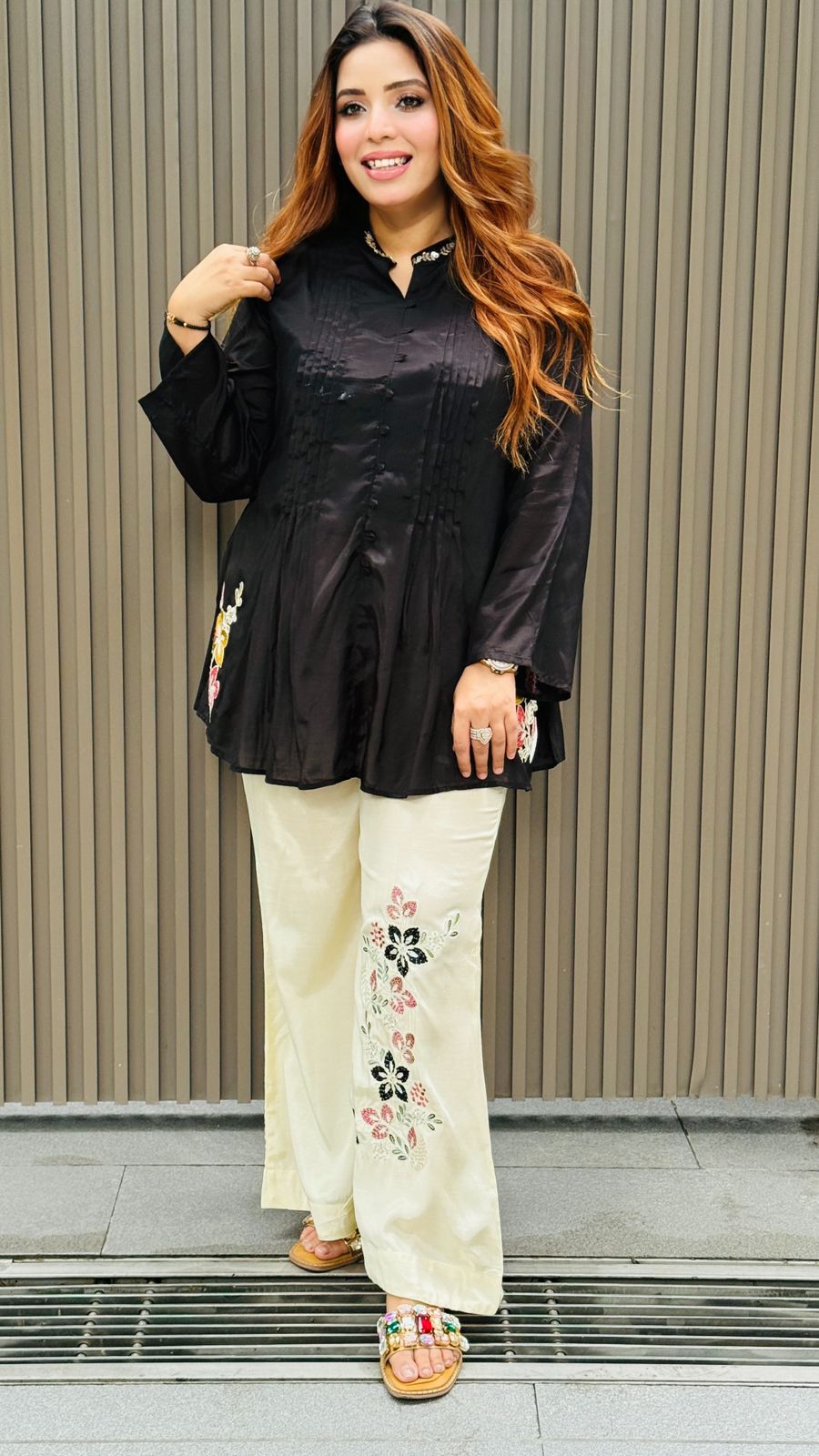 Inaaya Bell Plazo Set- Red, Black