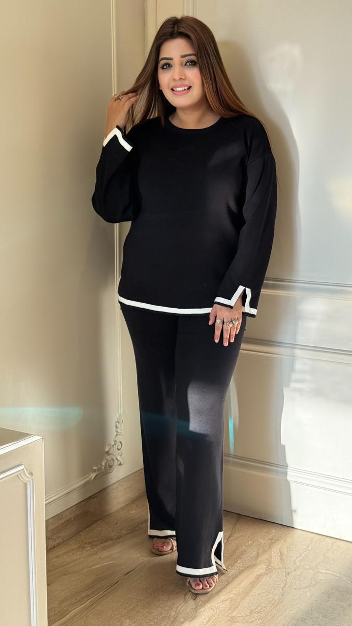 Netra Luxe Netting Cordset-Beige, Black, Pink - Beige / Free Size (upto 46) / Wool
