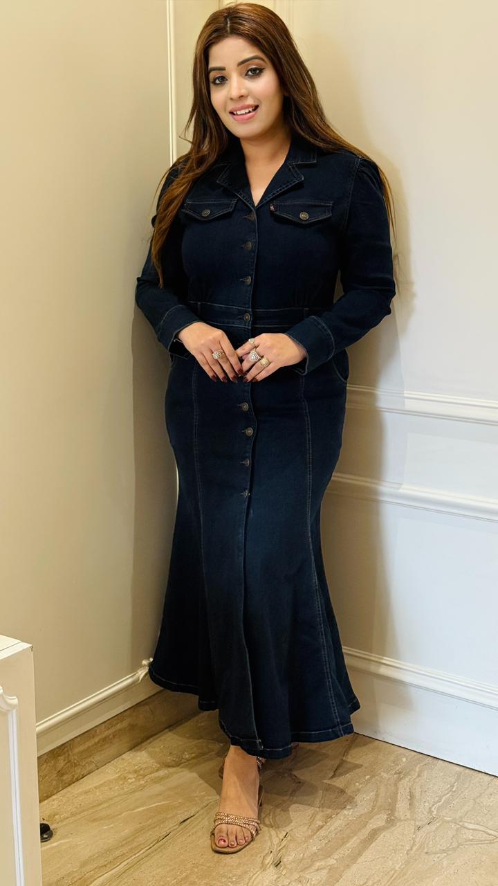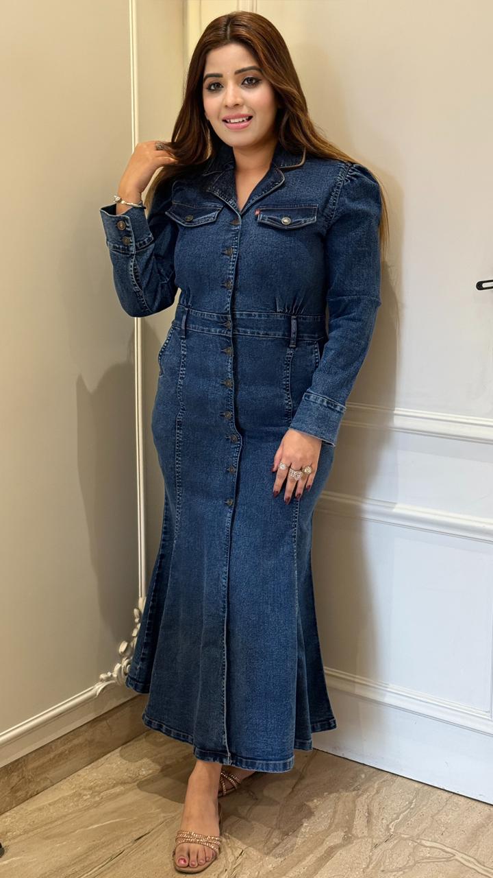 Arvani Fish-Cut Skirt Set- Blue, Navy - Blue / 38 / Denim