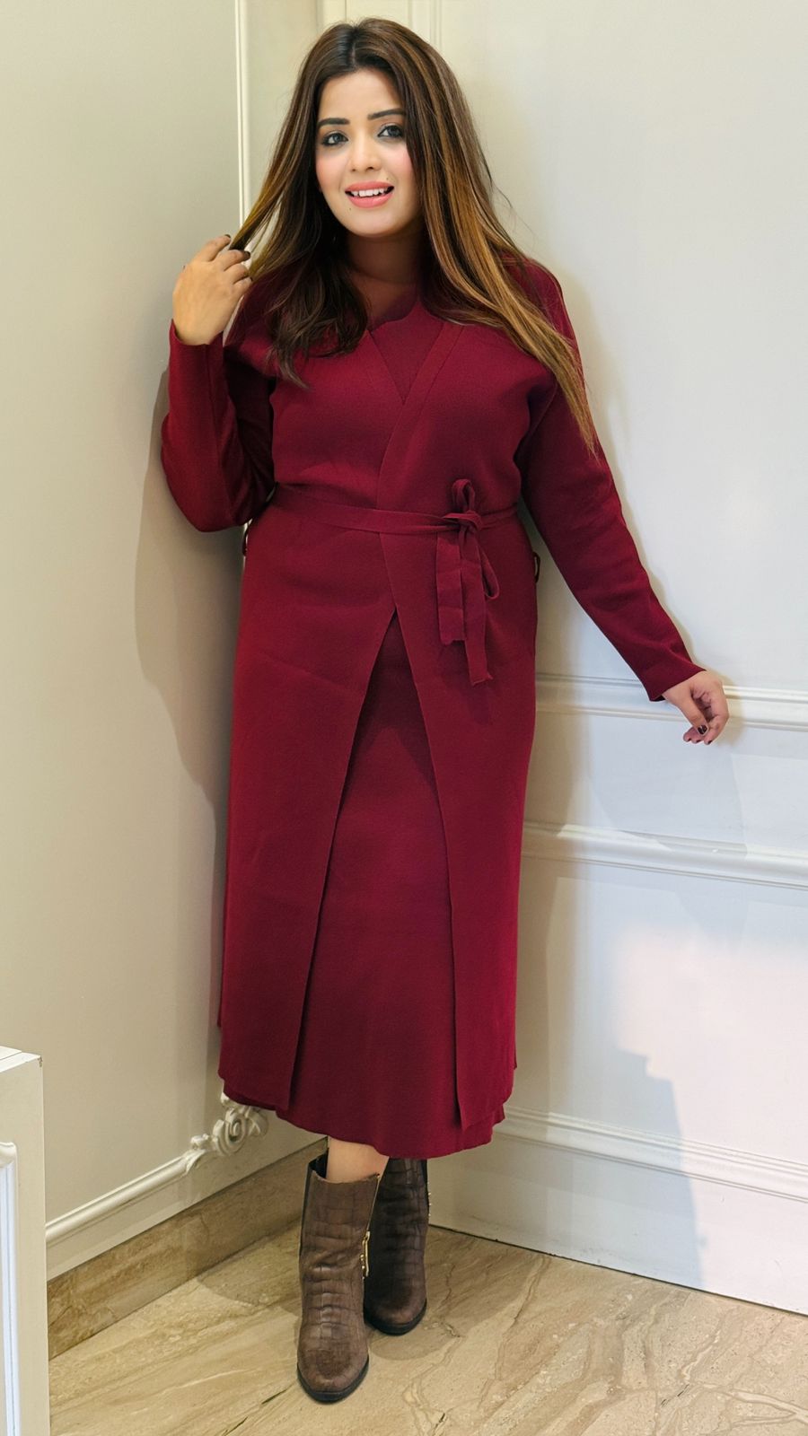 Mirel Warm Set- Maroon, Biege, Black, Brown