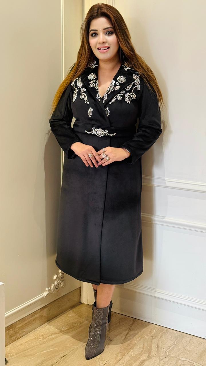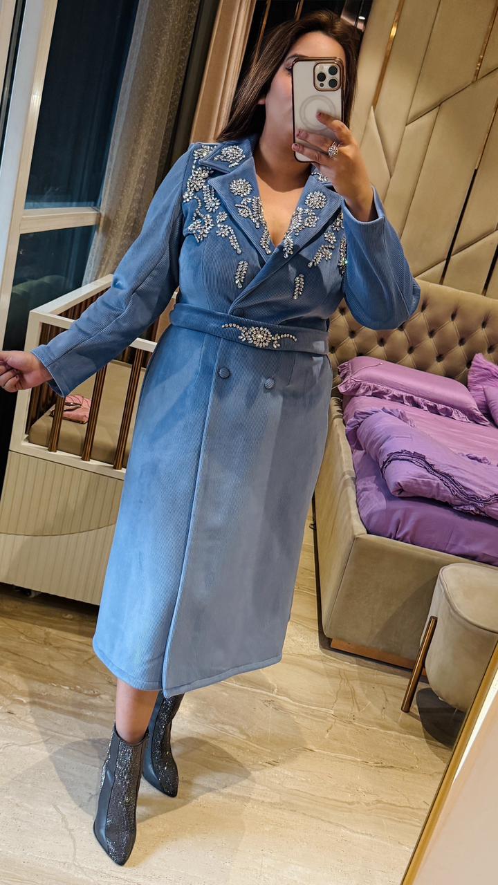 Velsara Coat Dress- Blue, Lavender, Green, Black - Blue / 40 / Velvet