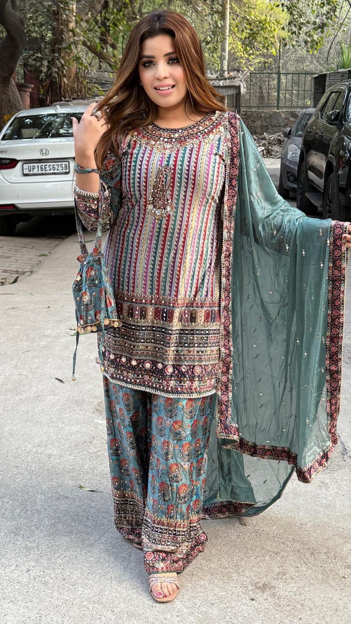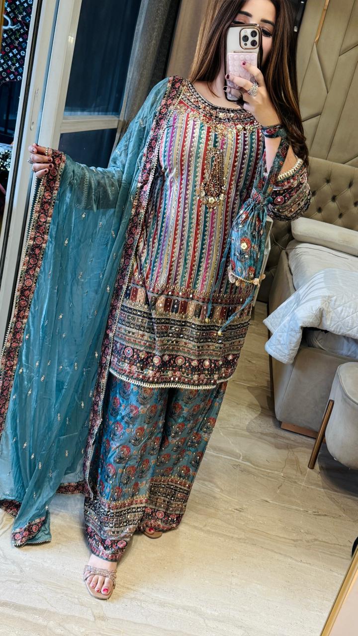 Lemya Velvet Suit Set- Blue