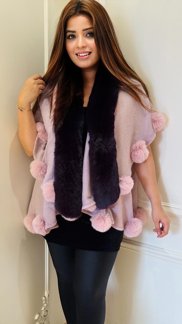 Veluna Pom-Pom Shrug- Gray, Blue, Pink, Green