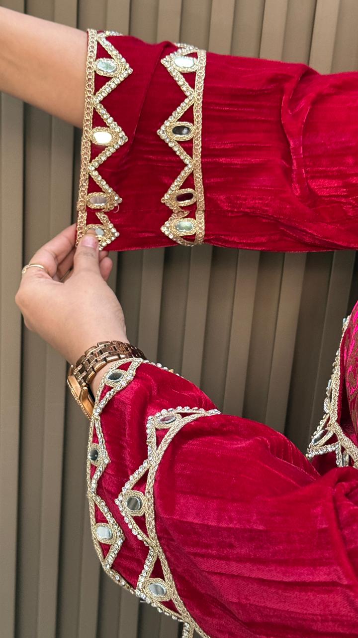 Zayana 3-Piece Cordset- Red, Black, Purple, Blue - Red / 40 / Velvet