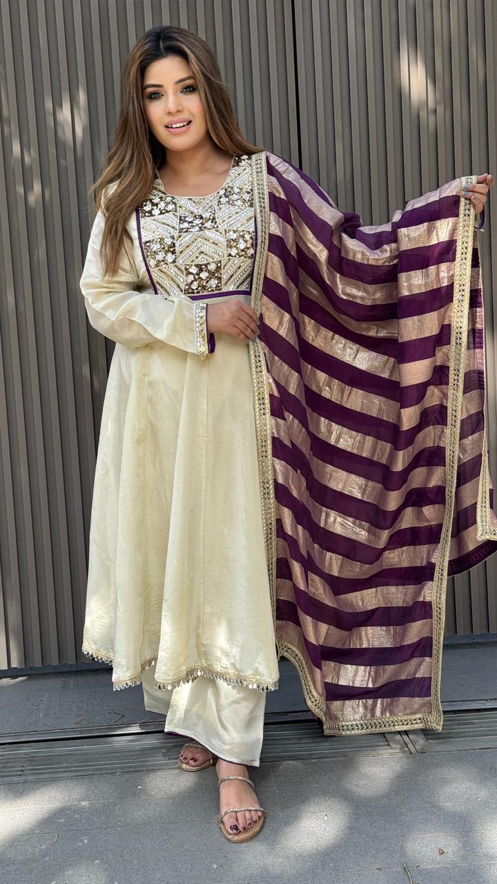 Aarshvika Anarkali Suit Set - Pink / 40 / Shimmer
