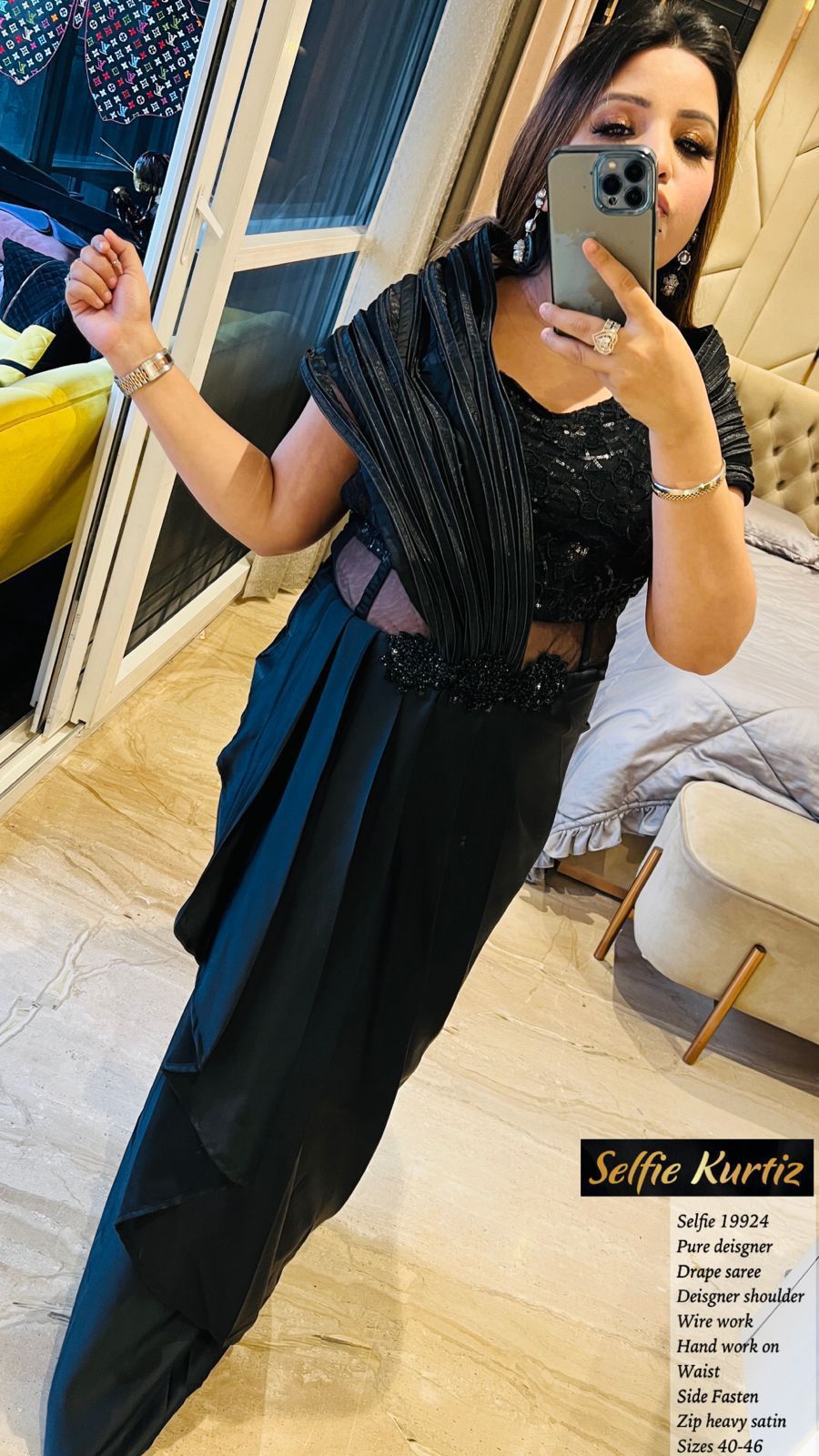 Amora Saree Gown- Maroon, Black - Maroon / 40 / Satin