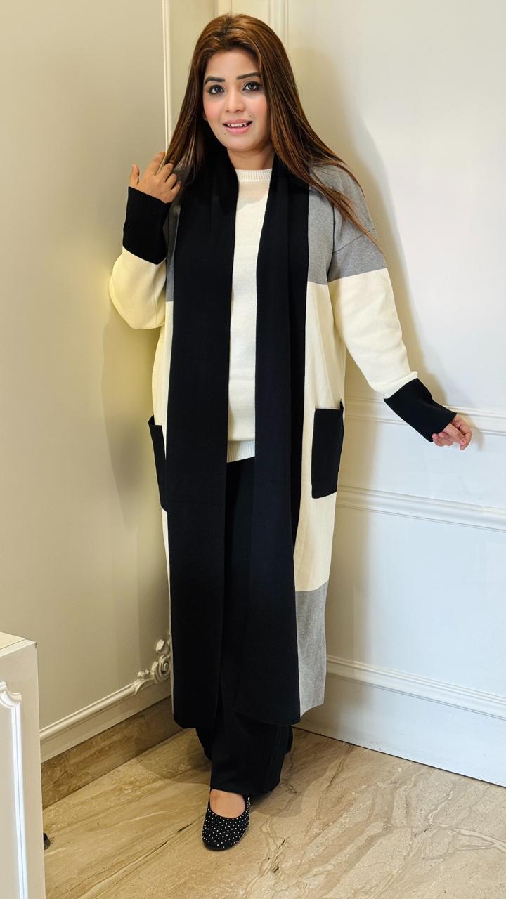 Avenya 3-Piece Shrug Set- Green, Brown, Black - Green / Free Size (upto 44) / Wool