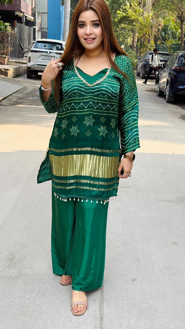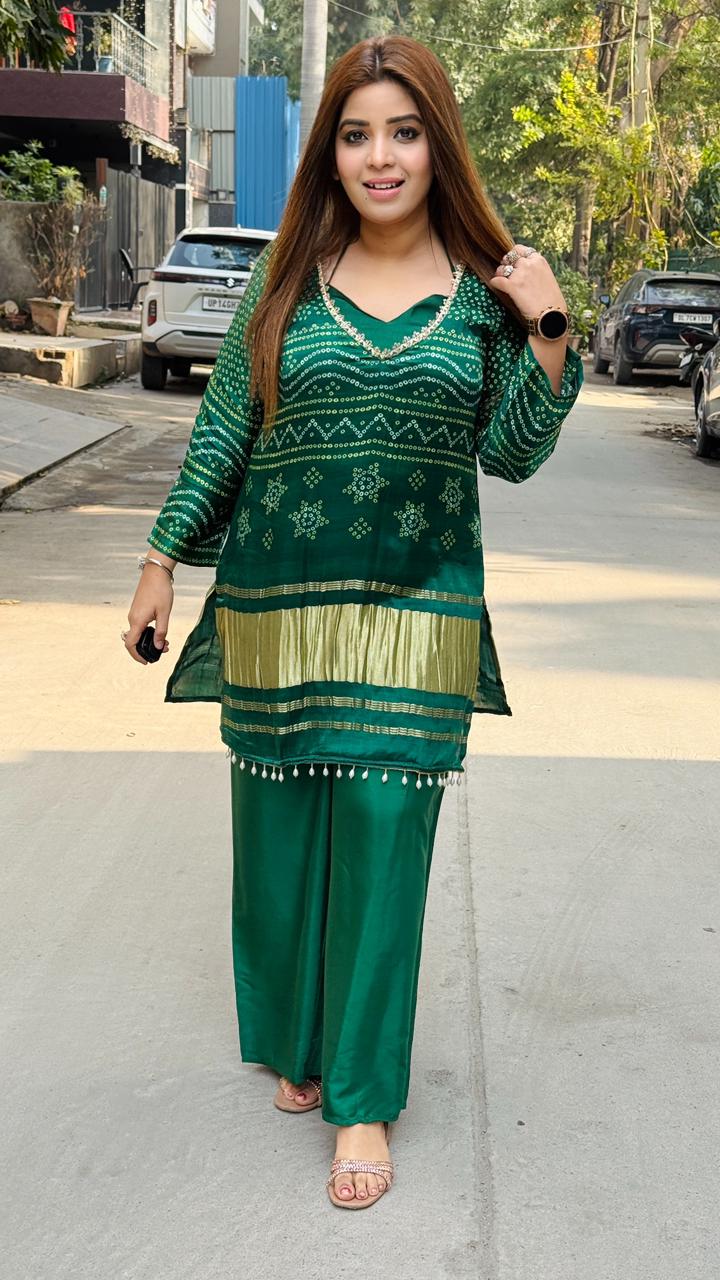 Kanira Plazo Set- Green, Pink - Green / 38 / Silk
