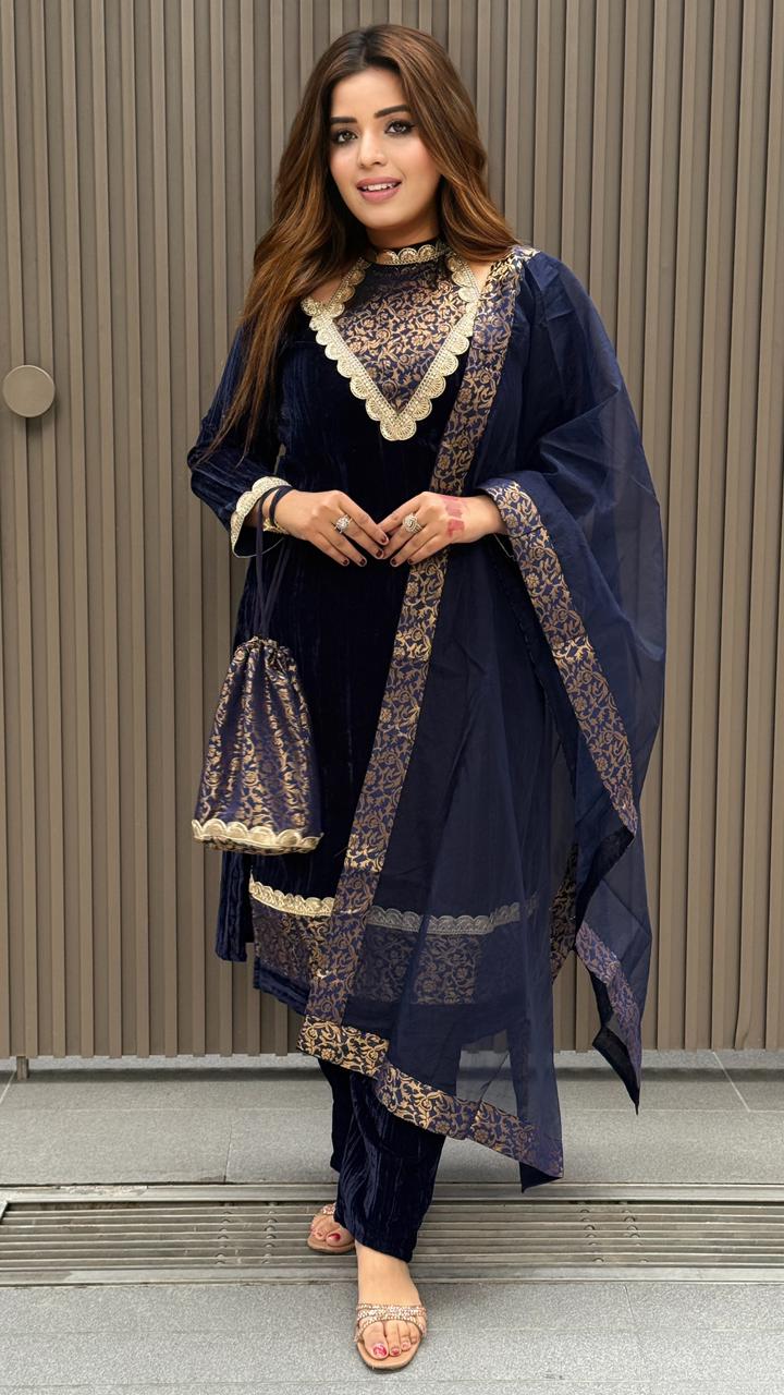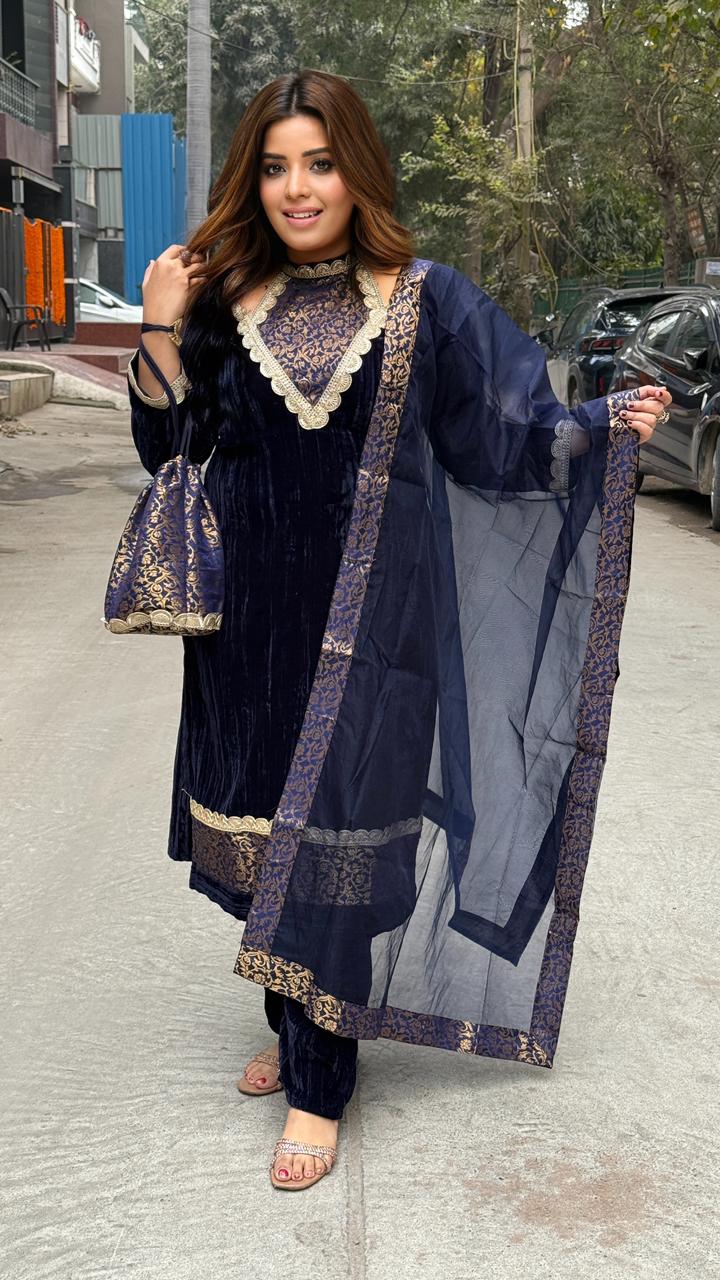 Taliare Velvet Suit Set- Navy Blue