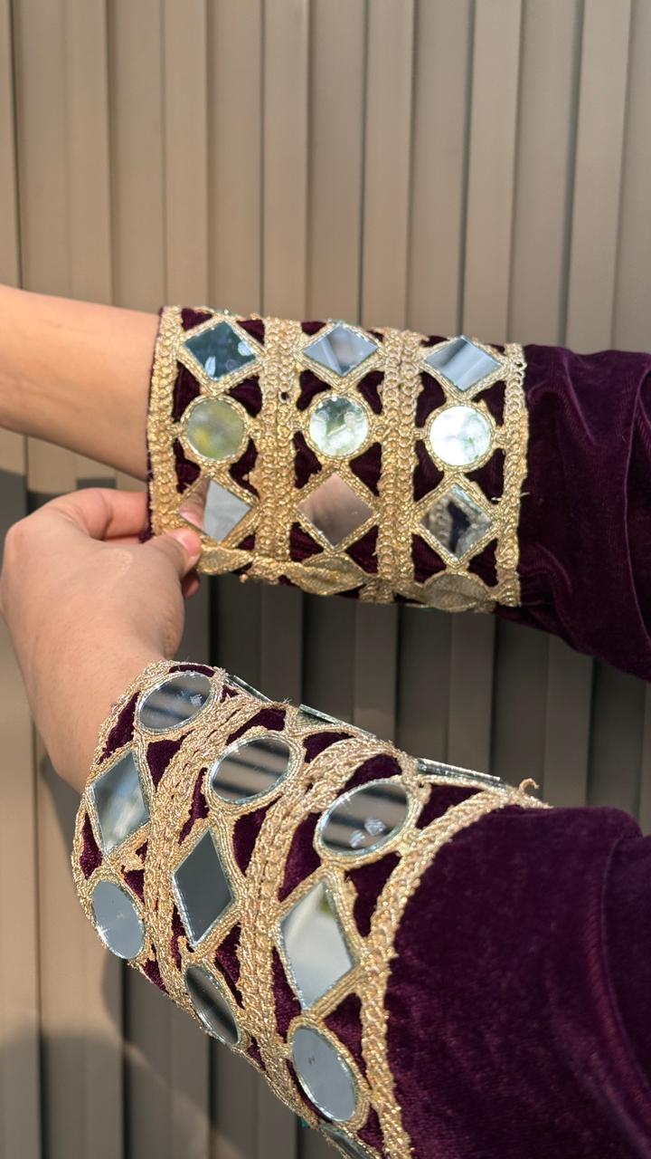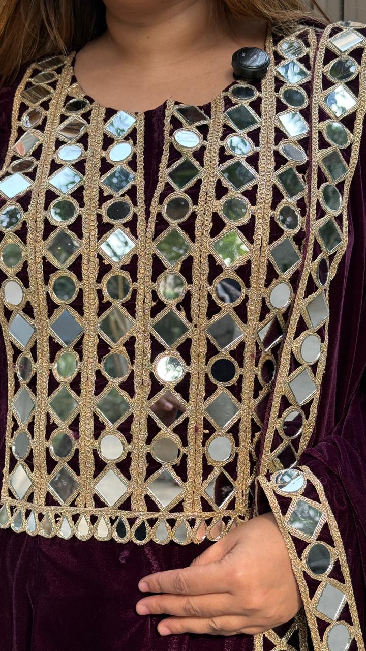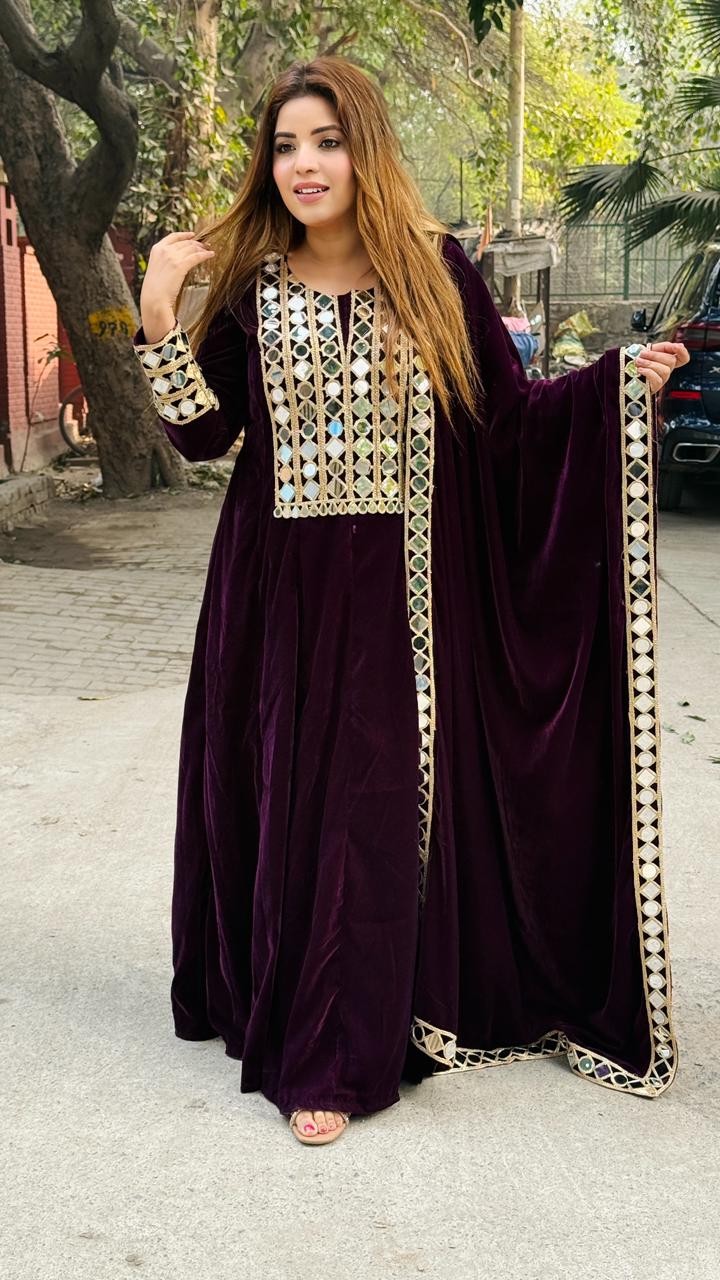 Zarvisha Velvet Anarkali- Purle, Black - Purple / 40 / Velvet