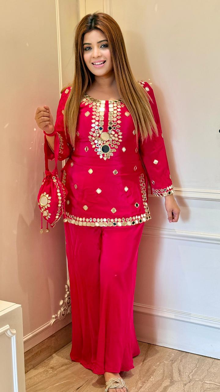 Rivaya Plazo Set- Pink, Magenta