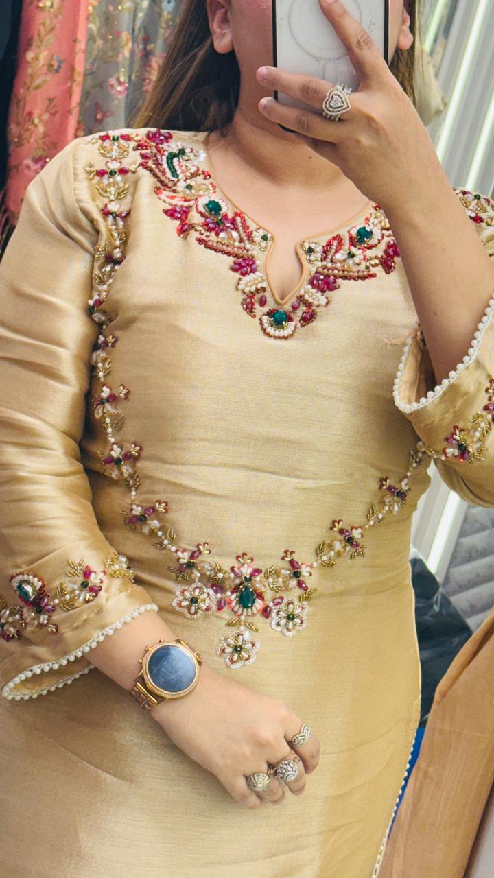 Zehvira Shimmer Suit Set- Beige