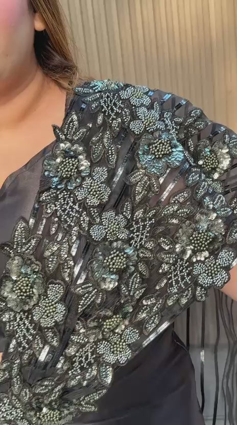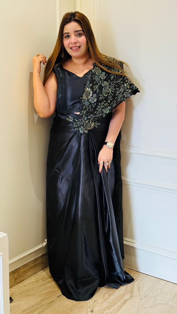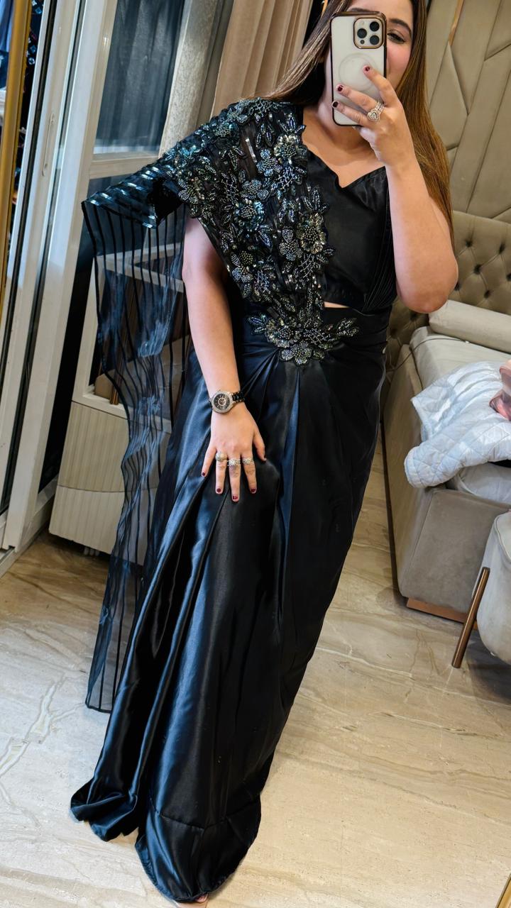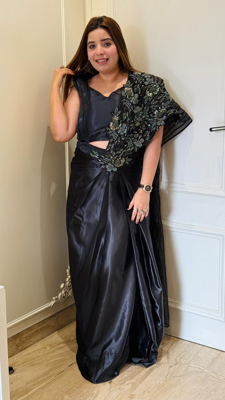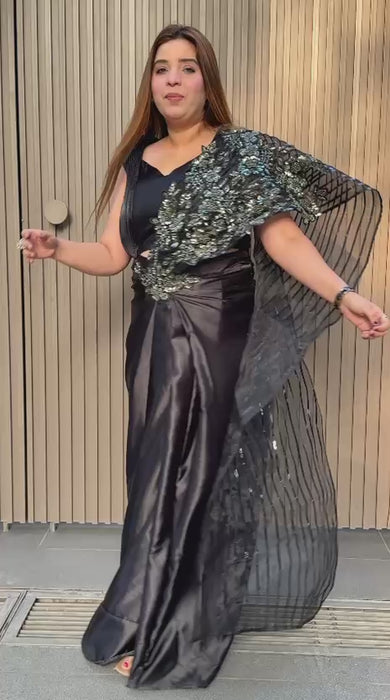 Kiara Satin Drape Saree- Pink, Black