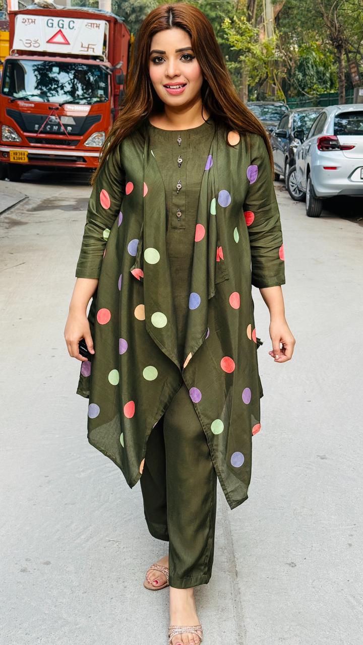 Olira Shrug Kurti Set- Yellow, Green - Yellow / 38 / Cotton