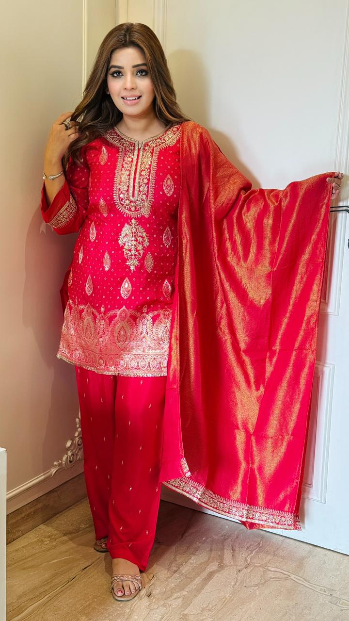 Vahnika Russian Silk Suit Set- Purple, Yellow, Magenta