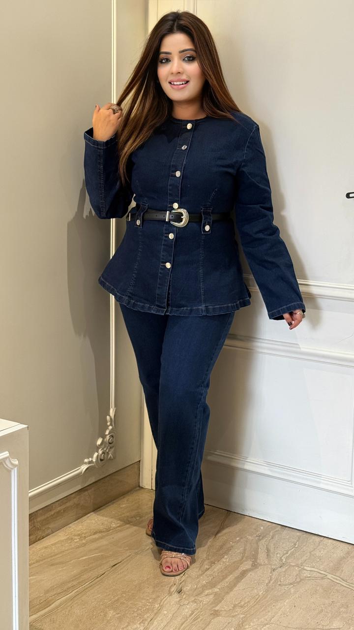 Denivella Denim Cordset- Blue, Navy - Blue / 40 / Denim