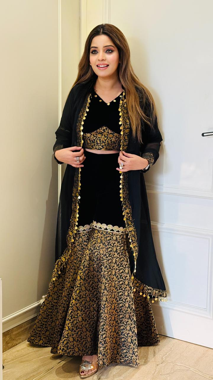 Black Velvet Indo-Western Set