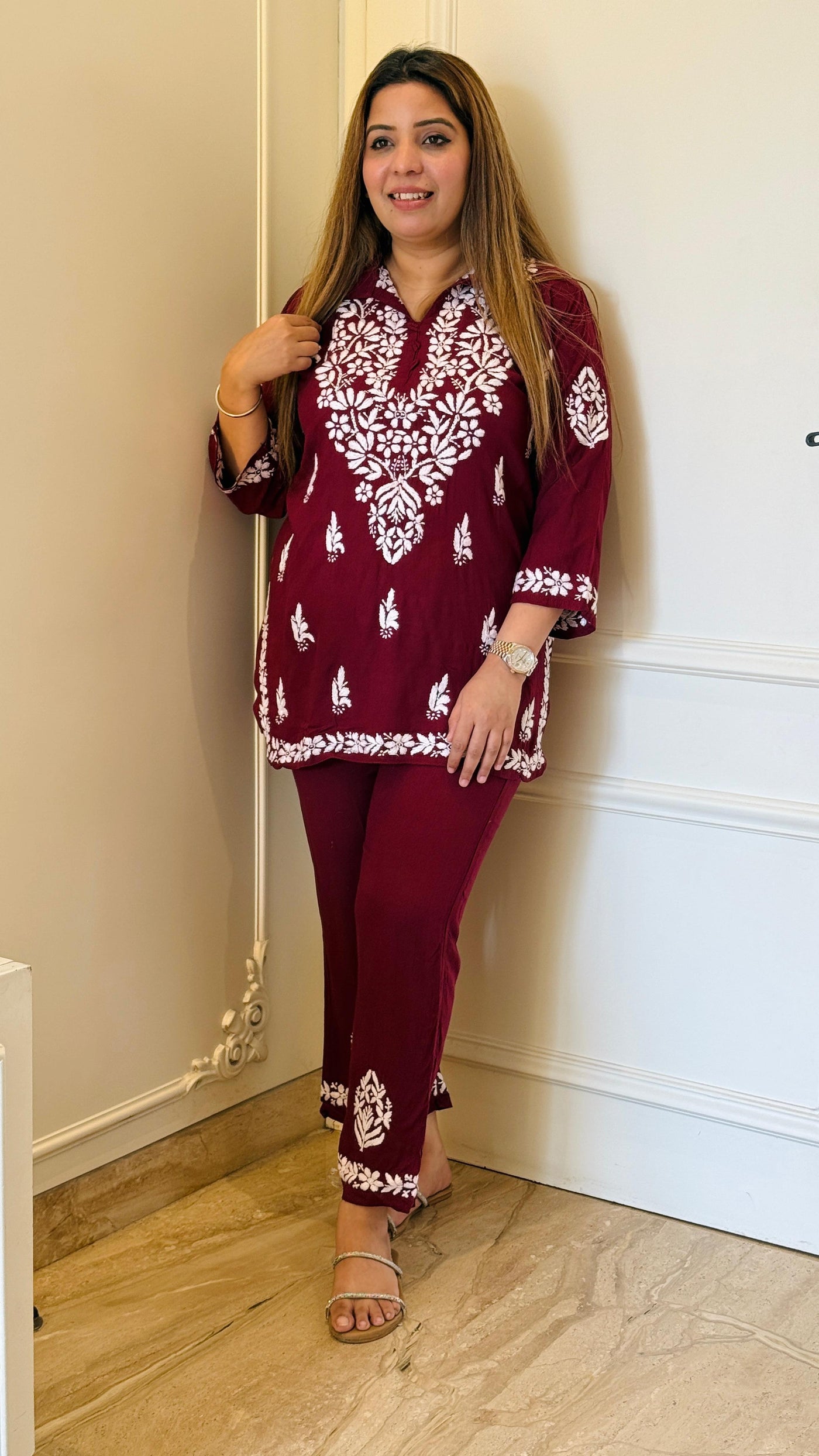 Maroon Noor Lakhnavi Rayon Co-ord Set