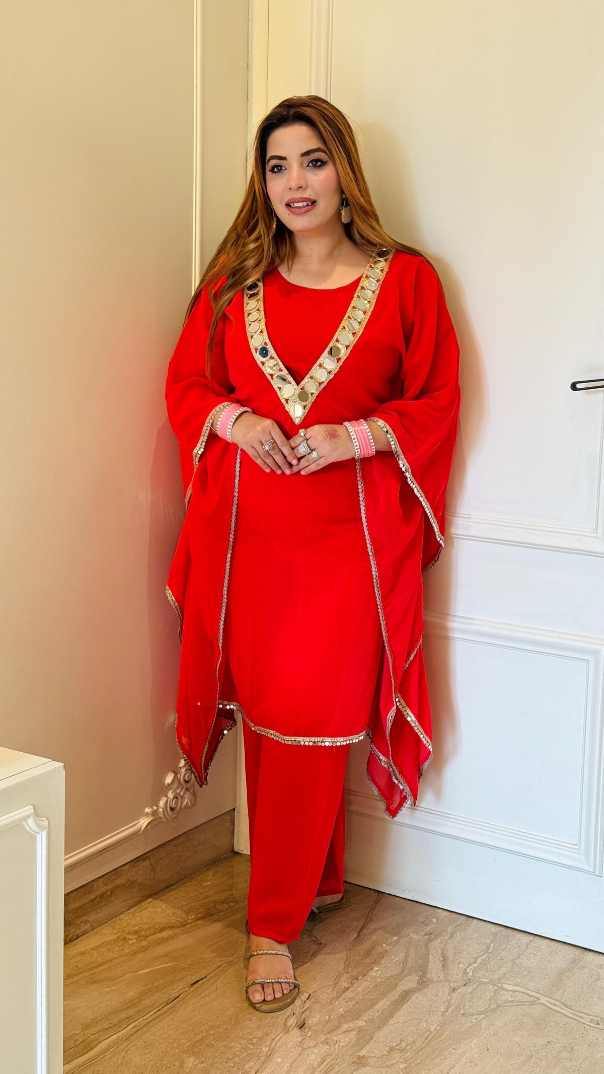 Devanshi Kaftan Set- Red - Red / 40 / Georgette