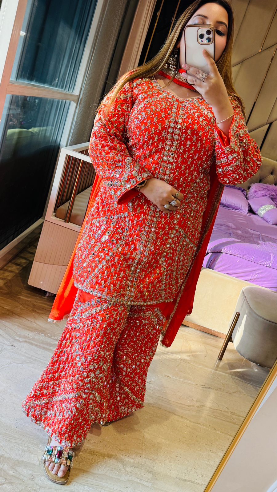 Reyna Bell Bottom Set- Orange