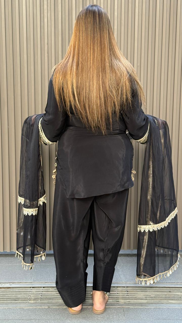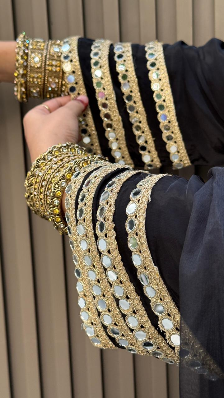 Riyana Salwar Suit- Black, Purple, Pink, Red, Yellow - Black / 40 / Crape