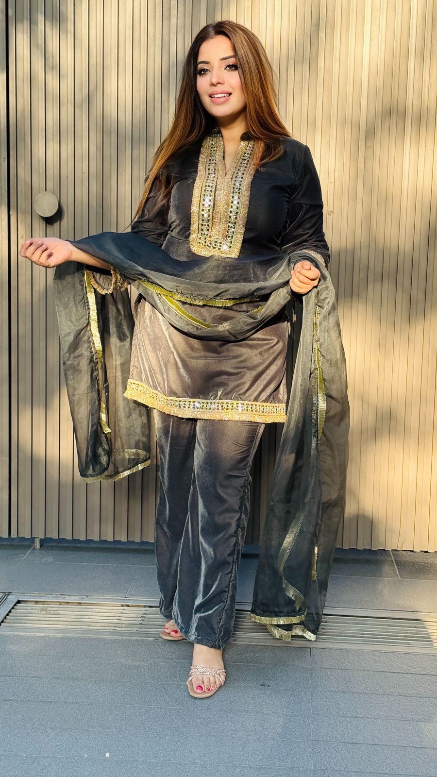 Venessa Velvet Suit Set- Grey, Purple, Black, Green