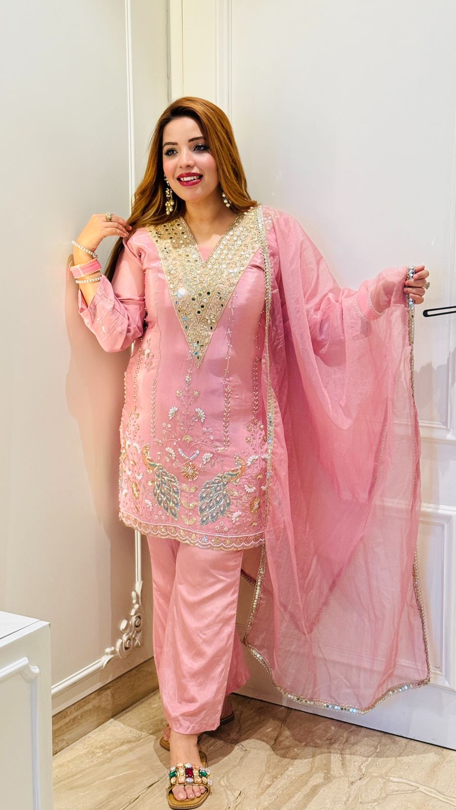 Zyra Suit Set- Pink - Pink / 40 / Crape